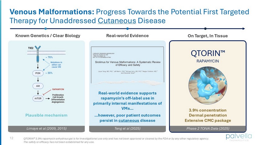 11 Phase 2 TOIVA Topline Results Dr. Jeff Martini, Chief Scientific Officer Dr. Michael Kelly, Cleveland Clinic QTORIN Rapamycin for Cutaneous Venous Malformations