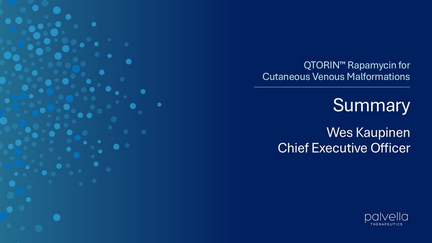21 Summary Wes Kaupinen Chief Executive Officer QTORIN Rapamycin for Cutaneous Venous Malformations