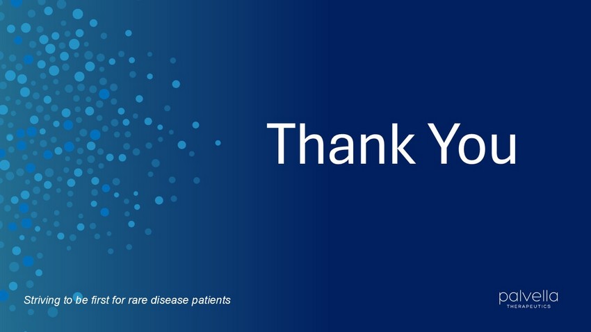 Palvella will host a conference call and live audiovisual webcast to discuss the Phase 2 TOIVA topline results at 8:30 a.m. ET today. To access the live webcast of the call with slides, please click here or visit the "Events & Presentations" section of Palvella’s website. To access the call by phone, please use this registration link, and you will be provided with dial in details. A replay of the webcast will be available approximately 2 hours after the conclusion of the call and archived for 90 days under the "Events & Presentations" section of the Company's website at www.palvellatx.com.
